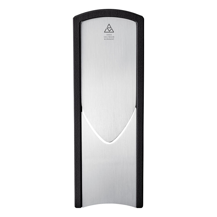 Extremely fine or medium-thick slices: The triangle fine slicer with end-holder is infinitely variable. See-through truffle, garlic or Parmesan slices or medium-thick potato, cucumber and zucchini slices are perfectly cut. The end-holder serves as a safety guard and assists at cutting the ingredient completely without any waste. The high-quality blade from hardened stainless German knife steel can be re-sharpened and replaced whenever necessary. Stainless steel and dishwasher-safe. Made in Solingen/ Germany.