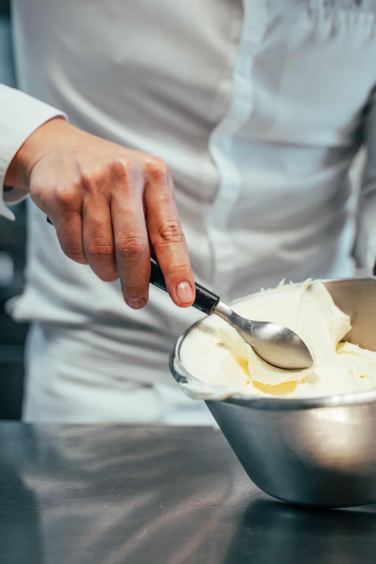 We were particularly impressed by the ease with which Vincent Valton made perfectly formed quenelles with the help of the triangle quenelle spoons! As a professional, he only needed a single hand movement. However, with a little practice, any hobby chef can also use our tools to make quenelles. Try it!