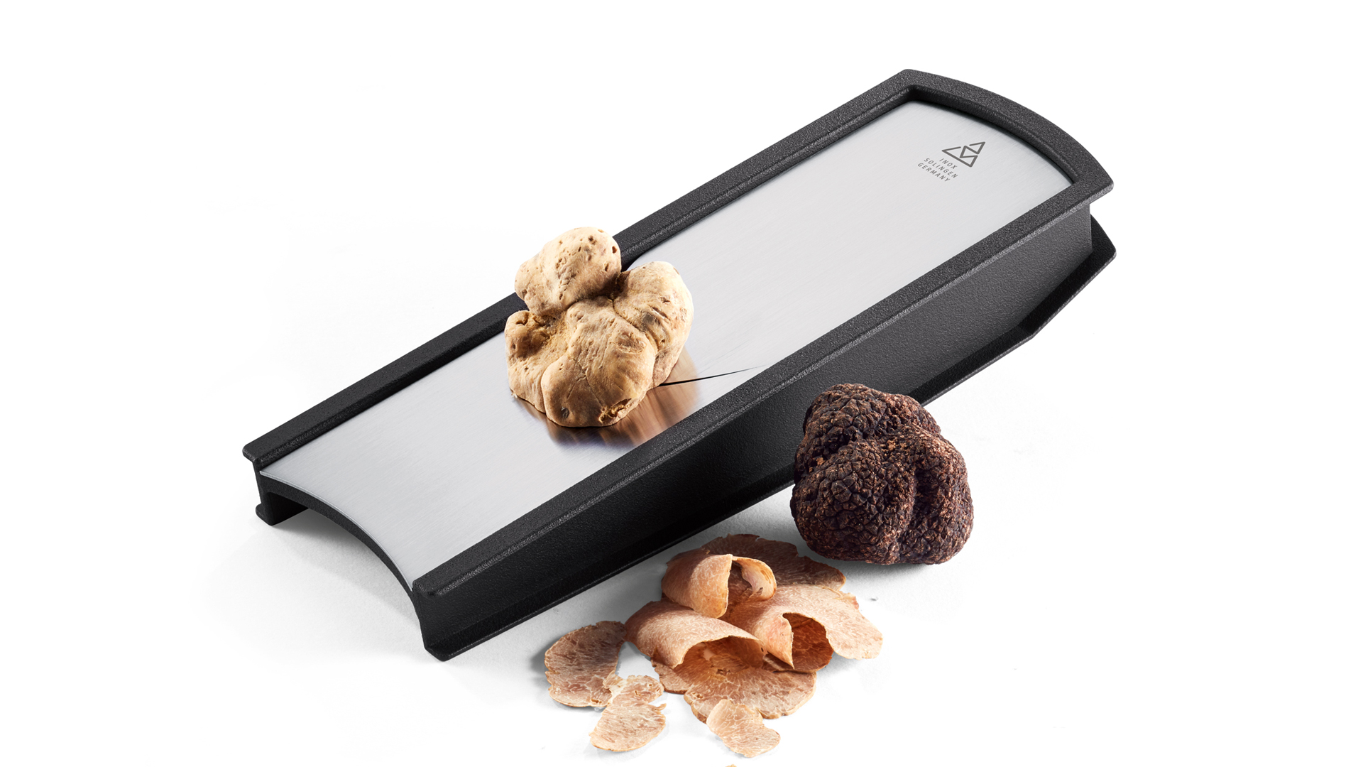 Der Feinhobel Professional schneidet stufenlos verstellbar von hauchdünn (ideal für Trüffel, Knoblauch, Chili, Parmesan) bis mitteldick (für Kartoffeln, Möhren, Gurken, Zucchini etc.). Der Restehalter ermöglicht sicheres Verarbeiten der Endstücke bis zur letzten Scheibe. Es bleiben keine Reste. Der Griff aus robustem, glasfaserverstärktem Polyamid ist für den professionellen Gebrauch geeignet. Spülmaschinengeeignet. Hergestellt in Solingen/Deutschland.