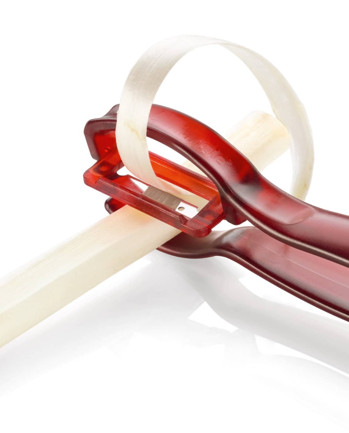 Der triangle Spargelschäler ist aufgrund unserer Erfahrungen mit Klingen für Spargel-Schälautomaten genau darauf ausgerichtet und besonders leicht zu reinigen. Einfach in einer Wasserschale ausschwenken und schon kann es weiter gehen.